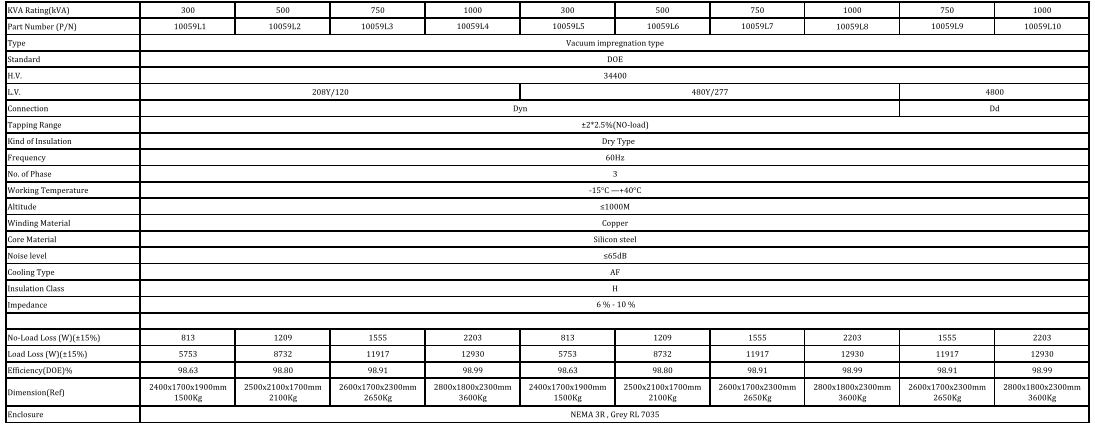 • Distribution Transformer 750 KVA, 3 PH, 60 Hz, P/N 10059L3