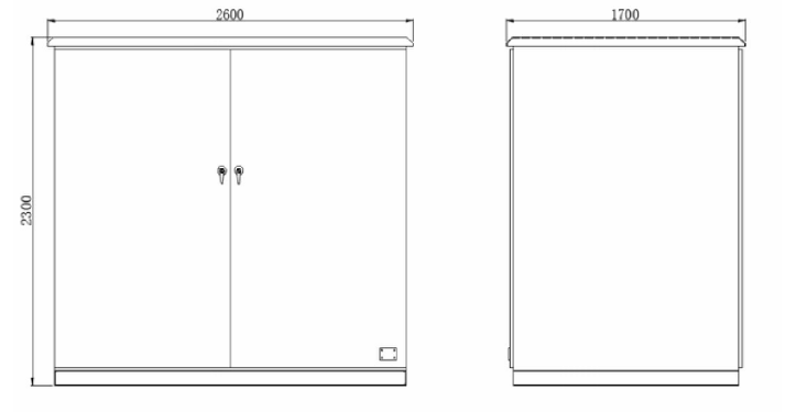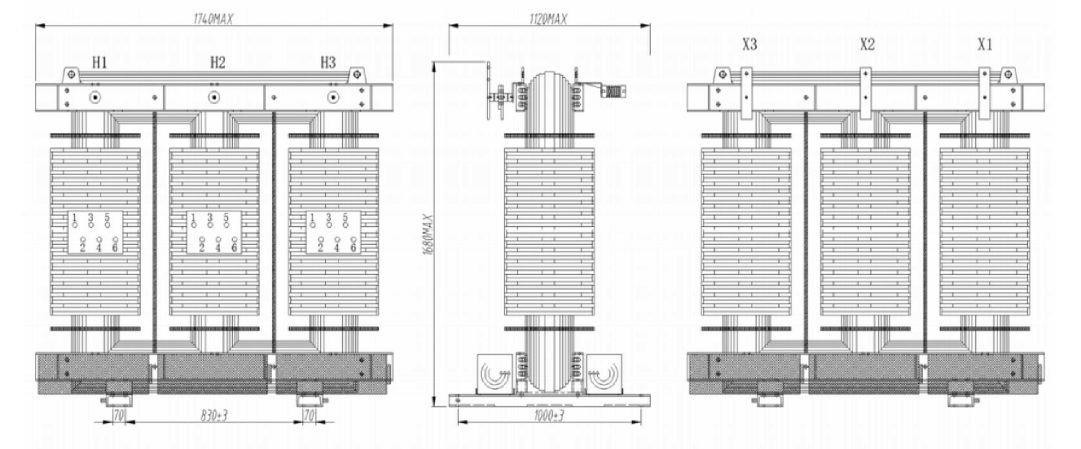 The configurations and dimensions of the transformer and enclosure is shown below:
