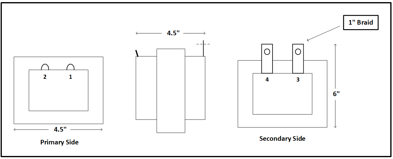 The outline drawing of the transformer is shown below: