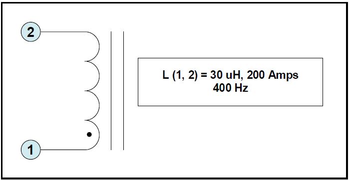 • L (1, 2) = 30uH, 200 Amps, 400 Hz, 1 PH