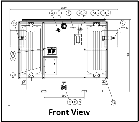 The front view of the oil filled transformer is shown below: