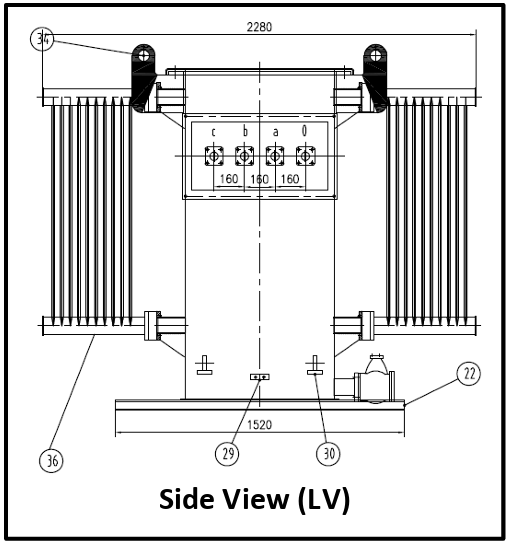 The side view of the oil filled transformer is shown below: