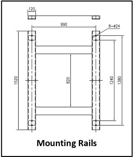 The mounting rails of the oil filled transformer are shown below: