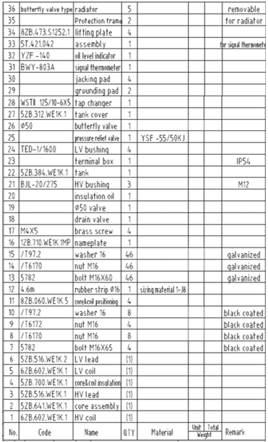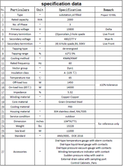 The specification sheet of the transformer is summarized below: