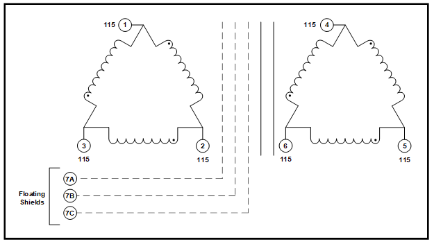 • Primary (1, 2, 3): 115 VAC L-L, 50 Amps, Delta