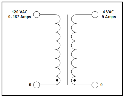 • Secondary: 4 VAC, 5 Amps