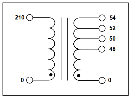 - Secondary: 48 / 50 / 52 / 54 VAC, 42 Amps max