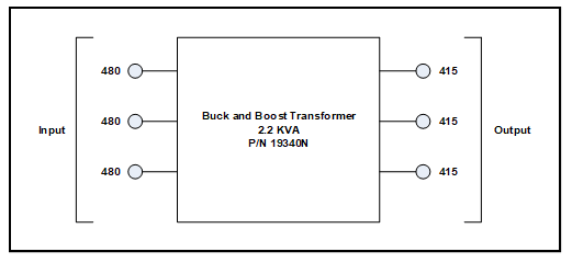 - Buck Boost transformer: 2.2 KVA, 3 PH, 60 Hz, P/N 19340N