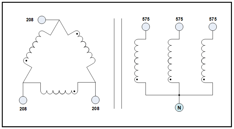 • Secondary: 575 VAC L-L, 5 Amps, Wye with a neutral N